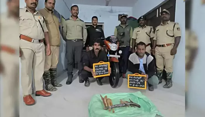 മംഗളൂരു: ചിക്കമഗളൂരു ജില്ലയിലെ മുഡിഗെരെയില് ബുധനാഴ്ച രാത്രി ചന്ദന കടത്തുമായി ബന്ധപ്പെട്ട് രണ്ട് പേര് അറസ്റ്റില്. ഹാസനിലെ ഒരു പ്രാദേശിക പത്രത്തിന്റെ റിപോര്ട്ടറെയും മറ്റൊരാളെയുമാണ് വനംവകുപ്പ് ഉദ്യോഗസ്ഥര് അറസ്റ്റ് ചെയ്തത്. ഹന്ദഗുളി സ്വദേശി എച്ച്.എസ്. മന്സൂര്, ഹാന്ഡ്പോസ്റ്റിലെ താമസക്കാരനായ എം.കെ. യൂസഫ് എന്നിവരാണ് അറസ്റ്റിലായത്. പ്രതികളെ കോടതിയില് ഹാജരാക്കി. രഹസ്യ വിവരത്തിന്റെ അടിസ്ഥാനത്തില്, വനംവകുപ്പ് ഉദ്യോഗസ്ഥര് താലൂക്കിലെ നവഗ്രാമത്തിന് സമീപം നടത്തിയ റെയ്ഡിലാണ് പ്രസ്സ് സ്റ്റിക്കര് പതിച്ച ബൈക്കില് കടത്തിയ എട്ട് ചന്ദനത്തടികള് പിടിച്ചെടുത്തത്. രക്ഷപ്പെടാന് ശ്രമിച്ച രണ്ട് പേരെയും പൊലീസ് പിടികൂടി.