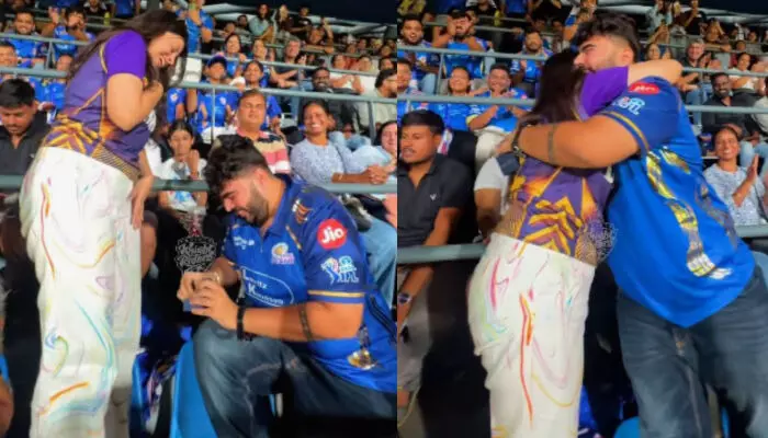 മുംബൈ: ക്രിക്കറ്റ് ആവേശം വാനോളമുയര്ന്ന മുംബൈ - കൊല്ക്കത്ത മത്സരത്തിനിടെ വാംഖഡെ സ്റ്റേഡിയം സാക്ഷ്യം വഹിച്ചത് ഒരു അപൂര്വ്വ പ്രണയസാഫല്യത്തിന് കൂടിയാണ്. ഐപിഎല്ലിലെ കരുത്തരായ മുംബൈ ഇന